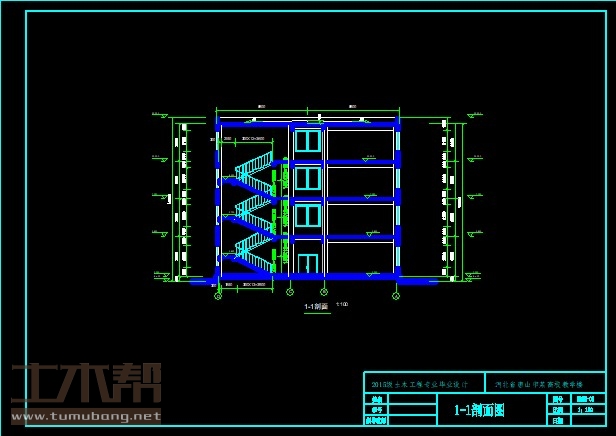 二至四层:教室10.8m*7.2m*6间,教室7.2m*7.2m*5间,教研室7.2m*7.2m*1间,卫生间3.6m*7.2m*4间,楼梯间3.6m*7.2m*2间;