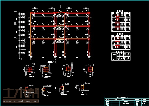 建筑长36m,宽15.9m.一榀框架首层层高4.8m二至六层层高3.6m,柱距3.6m,3跨,跨度6.6m,2.7m,6.6m;