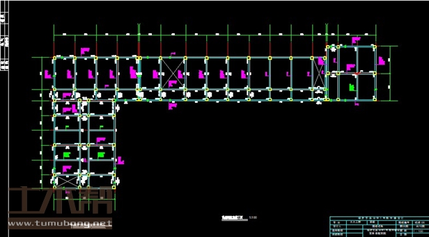 建筑长77.7m,宽31.8m.一榀框架首层层高4.75m,二至四层层高3.9m,柱距3.3m,3.6m,3跨,跨度6.3m,2.1m,6.3m;