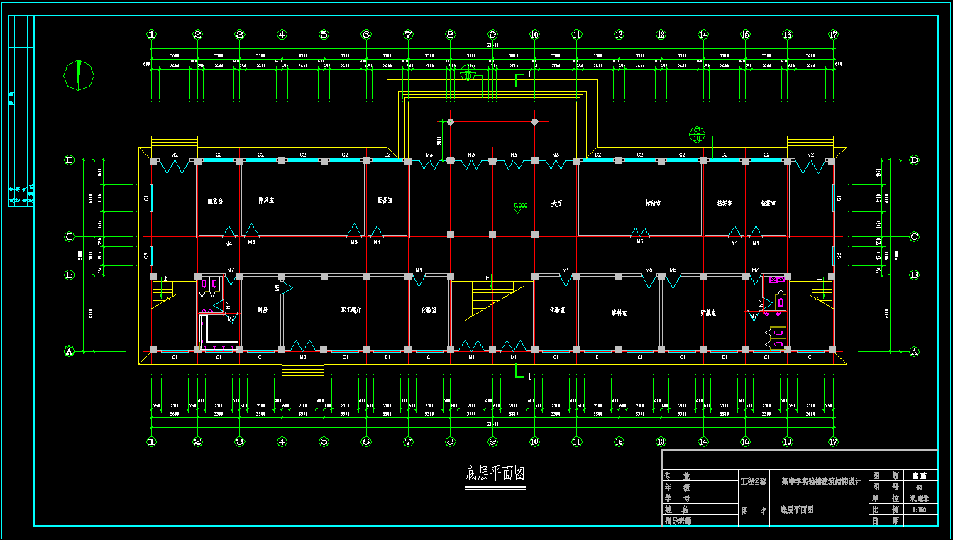 5层框架结构教学楼,土木工程建筑结构毕业设计,长53.4米,宽15.0米,面积4087平方米