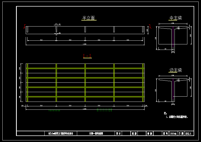 3孔13m跨简支T梁桥(计算书、6张CAD图)