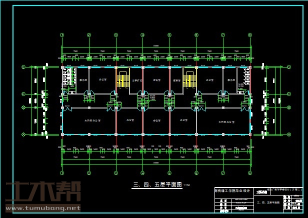 6层框架结构办公楼,土木工程建筑结构毕业设计,长51米,宽18.6米,面积7000平方米