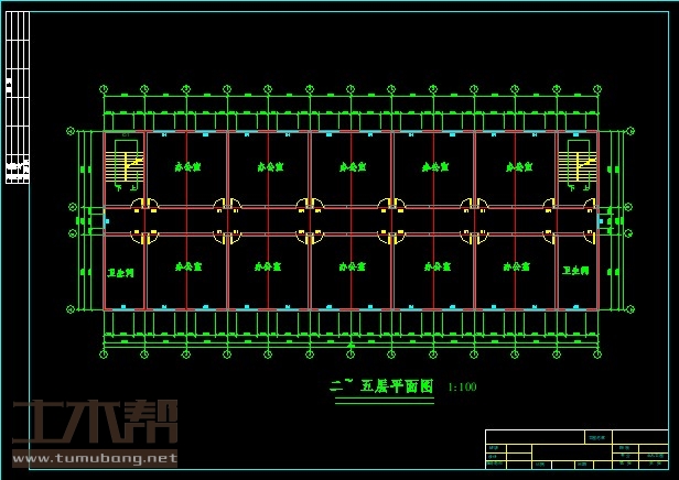 5层框架结构办公楼,土木工程建筑结构毕业设计,长64.65米,宽12.75米,面积 4121平方米