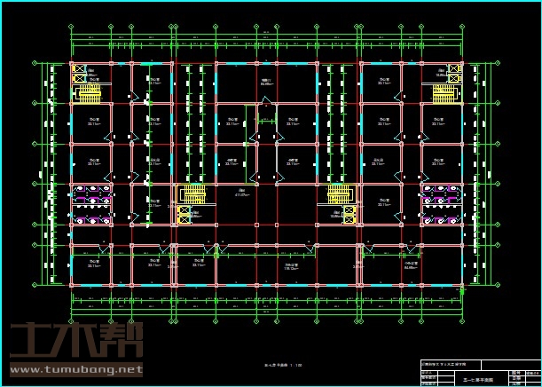 7层框架结构办公楼,土木工程建筑结构毕业设计,长50.4米,宽14.6米,面积5200平方米