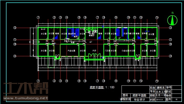 5层框架结构办公楼,土木工程建筑结构毕业设计,长76.75米,宽44.6米,面积7144平方米