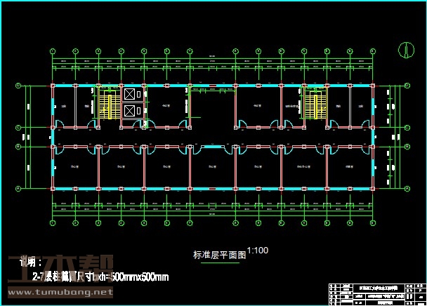 6层框架结构办公楼,土木工程建筑结构毕业设计,长81.1米,宽14.7米,面积7153平方米