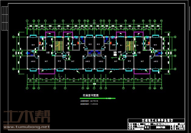 6层框架结构住宅楼,土木工程建筑结构毕业设计,长55.6米,宽13.3米,面积4630平方米