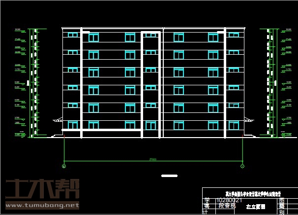 5层框架结构宿舍楼,土木工程建筑结构毕业设计,长32.3米,宽19米,面积3509平方米