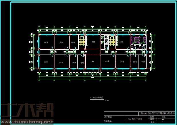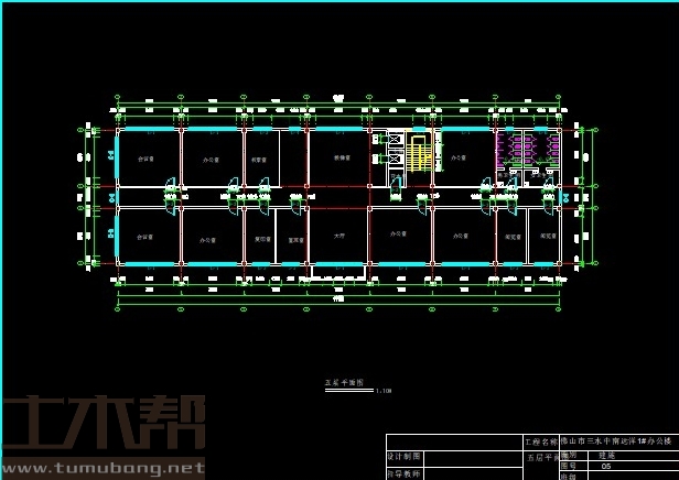 二层至六层:大厅6.6m*7.2m*1间;候梯厅6.6m*7.2m*1间;楼梯间3.6m*7.2m*2间,阅览室3.6m*7.2m*2间,厕所3.6m*7.2m*2间,办公室6.6m*7.2m*5间,会议室6.6m*7.2m*2间,复印室3.6m*7.2m*1间,档案室3.6m*7.2m*1间,门卫室3.6m*7.2m*2间;