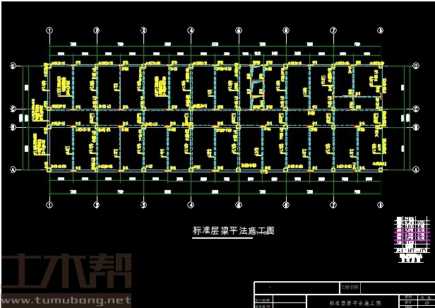 建筑长50.4m,宽15.9m.一榀框架层首高4.2m,标准层高3.3m,柱距7.2m,3跨,跨度6.6m,2.7m,6.6m;