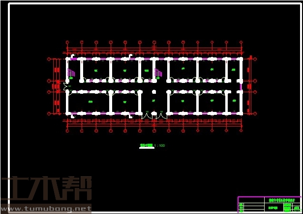 二至六层:楼梯间4m*6m*2间,教室8m*6m*7间,办公室6m*8m*1间,女厕4m*6m*1间,男厕4m*6m*1间,饮水室4m*6m*1间,活动室6m*12m*2间;