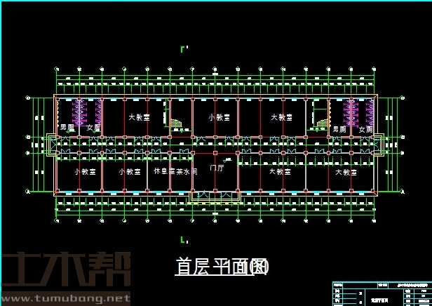 二层至五层:大教室12.6m*7.2m*4间,小教室8.4m*7.2m*4间,休息间4.2m*7.2m*1间,女厕4.2m*7.2m*2间,男厕4.2m*7.2m*2间,楼梯间4.2m*7.2m*2间,茶水间4.2m*7.2m*1间;