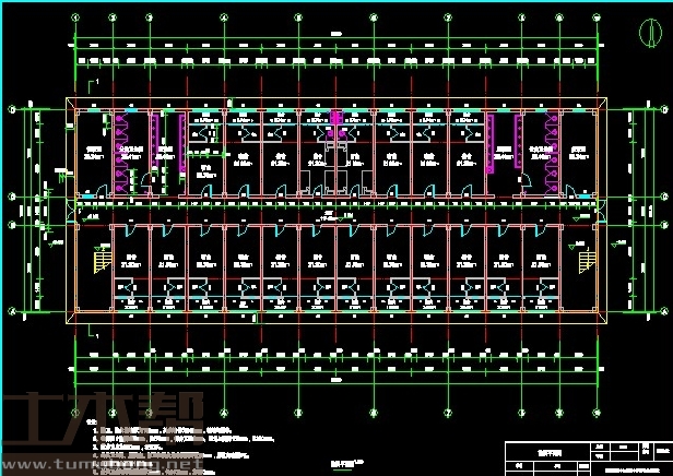 一层:宿舍3.9m*7.2m*20间,值班室3.9m*7.2m*2间,公共卫生间3.9m*7.2m*2间,盥洗室3.9m*7.2m*2间,楼梯间3.9m*7.2m*2间;