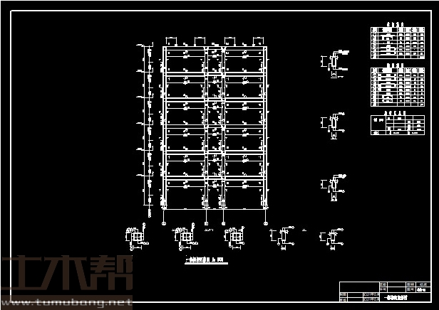 建筑长50m,宽13.1m.一榀框架首层层高3.6m,二至六层3.3m,3跨,跨度5.4m,2.1m,5.4m;