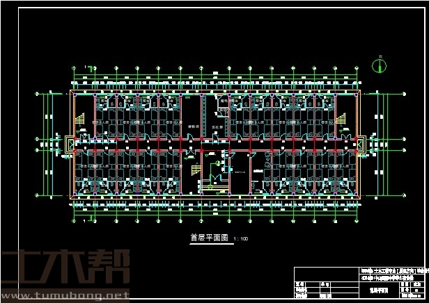 二至六层:宿舍3.8m*8m*22间,楼梯间3.8m*8m*3间,活动室5m*8m*1间;