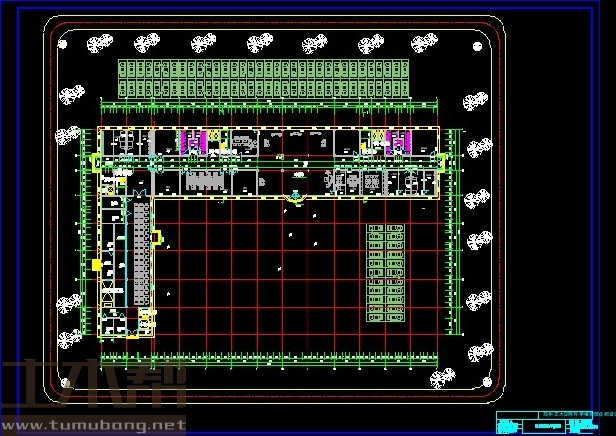 五至六层:办公室6m*6m*15间,大会议室21m*6m*1间,小会议室15m*6m*1间,卫生间6m*3m*4间,电梯2.2m*1.5m*8间,楼梯间6m*3m*4间,开水房6m*6m*2间,会客室6m*6m*2间,报告厅15m*6m*1间;