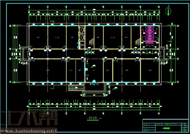 一层:门厅7.2m*7.2m*1间;资料室7.2m*7.2m*1间;大办公室7.2m*7.2m*2间;活动室7.2m*7.2m*1间;多功能厅14.4m*7.2m*1间;厕所7.2m*7.2m*1间;门厅7.2m*7.2m*1间;档案室10.8m*7.2m*1间;侯梯厅4.8m*7.2m*1间;楼梯间3.6m*7.2m*2间;清扫间3.6m*7.2m*1间;储藏间3.6m*7.2m*1间;监控室3.6m*7.2m*1间;值班室3.6m*7.2m*1间;小办公室3.6m*7.2m*1间;