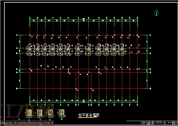 建筑长63m,宽15.9m.一榀框架层高3.9m,柱距4.5m,3跨,跨度7.5m,2.4m,6m;