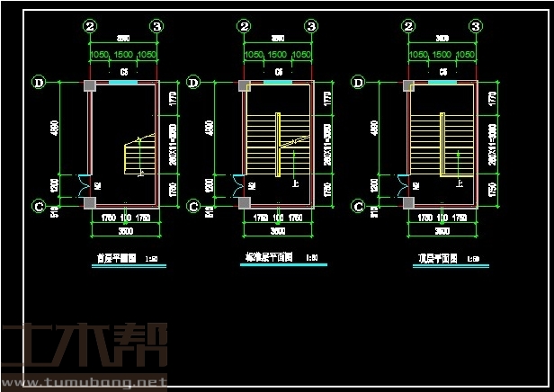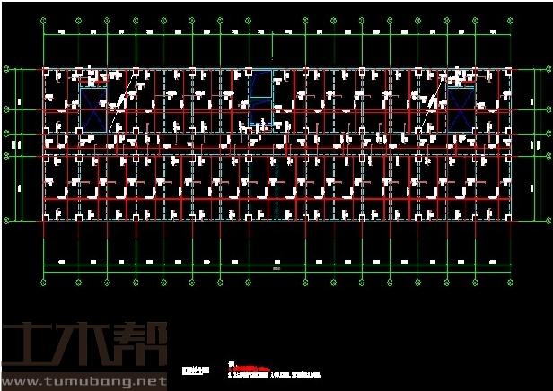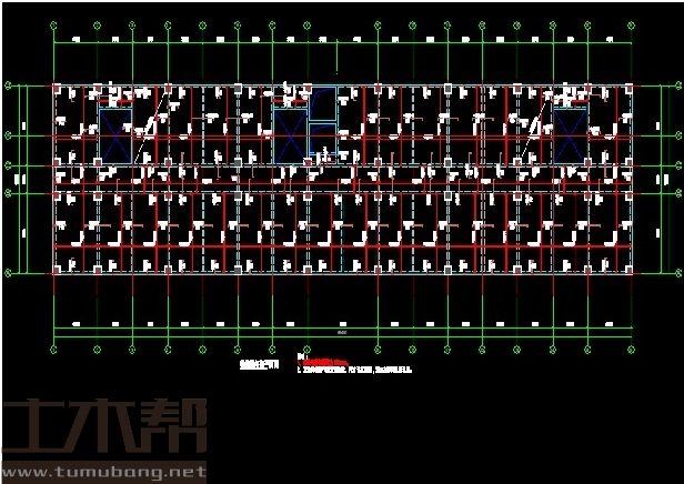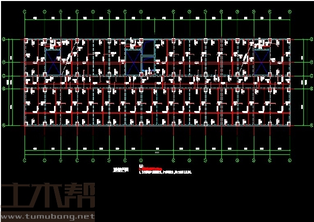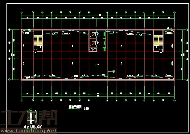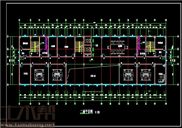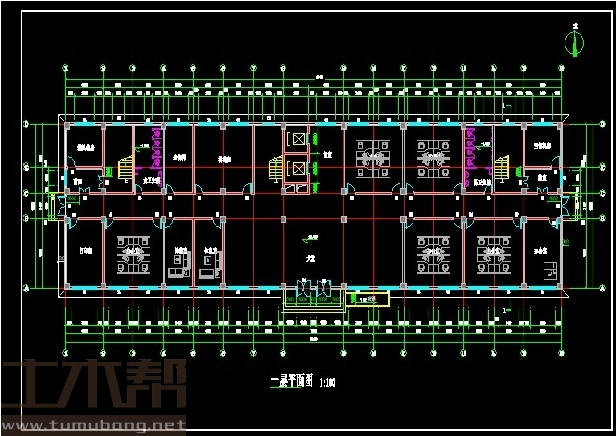 二至七层层:会议室13.8m*14.4m*1间,卫生间3.6m*6m*2间,楼梯间3m*6m*2间,办公室3m*6m*10间,大办公室7.2m*6m*1间;