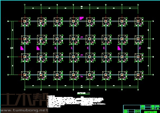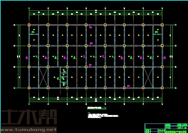 建筑长56.7m,宽27m.一榀框架层高4.5m,柱距8.1m,3跨,跨度9m,9m,9m;