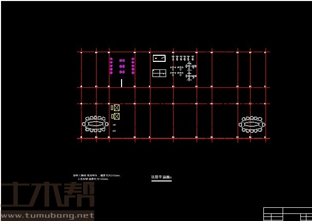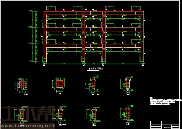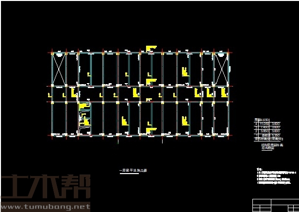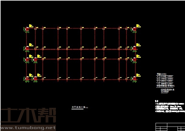 建筑长47.4m,宽22.2m.一榀框架层高3.6m,柱距3.9m,3跨,跨度9m,4.2m,9m;