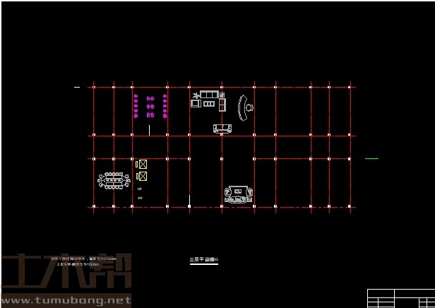 二至四层层:会议室13.8m*14.4m*1间,卫生间3.6m*6m*2间,楼梯间3m*6m*2间,办公室3m*6m*10间,大办公室7.2m*6m*1间;