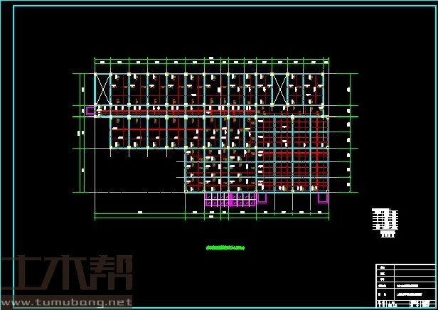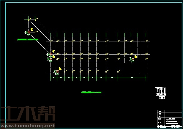 建筑长43.7m,宽22.5m.一榀框架层高3.6m,柱距3.6m,3跨,跨度6m,2.1m,6m ;