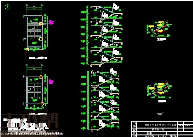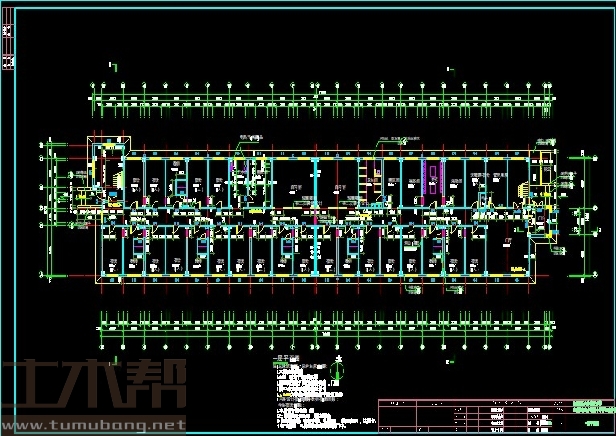 一至五层:楼梯间3.6m*7m*3间,电梯间3.6m*7m*2间,宿舍3.6m*7m*28间,洗衣房3.6m*7m*1间,水房3.6m*7m*3间