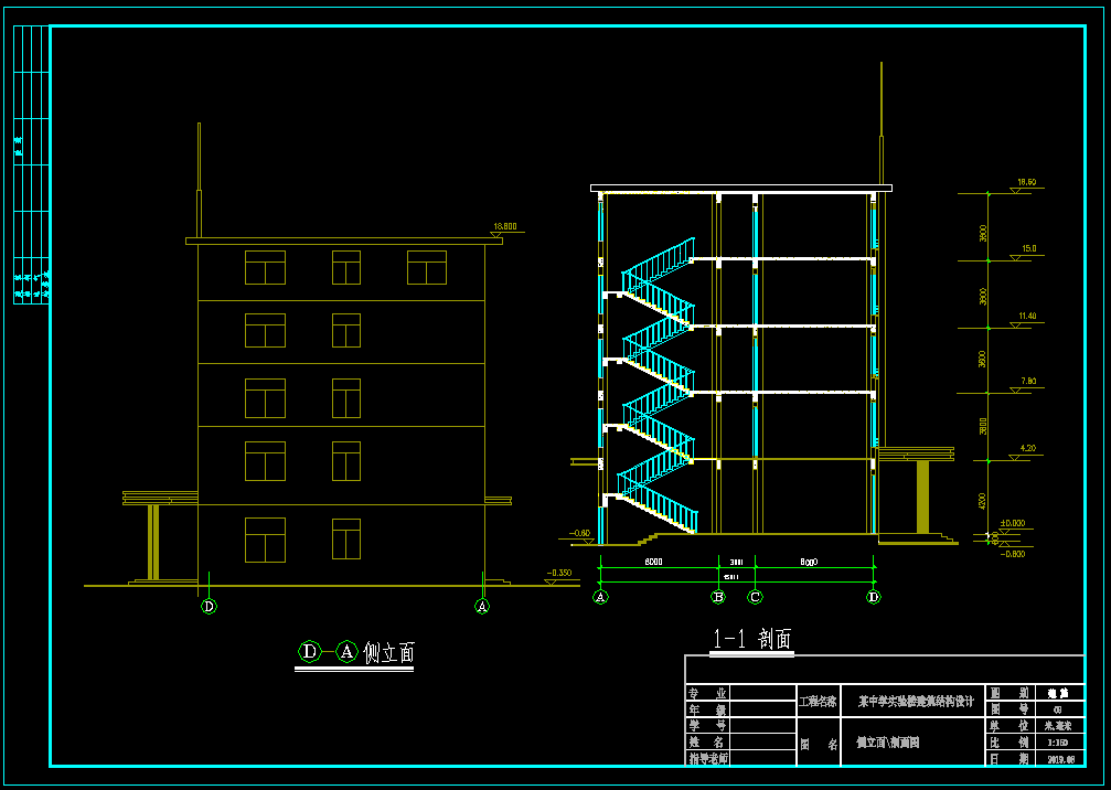 5层框架结构教学楼,土木工程建筑结构毕业设计,长53.4米,宽15.0米,面积4087平方米