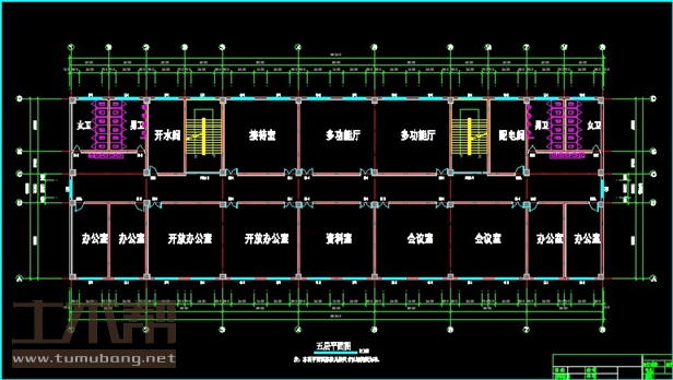开放办公室8*8*2间,资料室8*8*1间,会议室8*8*2间,男卫4*5.6*2间,女卫4*5.6*2间;