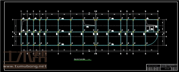 建筑长79.78m,宽15.24m.一榀框架层高3.3m,柱距7.2m,2跨,跨度7.2m,7.8m;