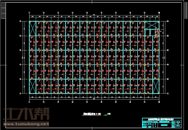 建筑长62.1m,宽33m.一榀框架层高4.2m,柱距6.9m,跨度6.6m;