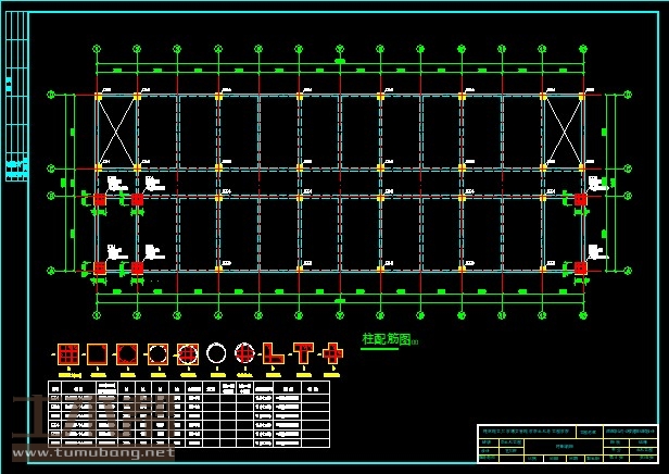 建筑长43.2m,宽15.6m.一榀框架层高3m,柱距7.2m,3跨,跨度6.6m,2.4m,6.6m;