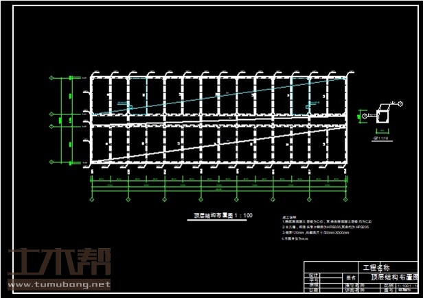 建筑长50.9m,宽17.3m.一榀框架层高4.5m,柱距7.2m,3跨,跨度7.2m,2.4m,7.2m;;