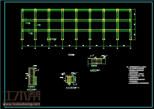 建筑长48m,宽24m.一榀架层高4.2m,柱距6m,4跨,6m,6m,6m,6m;