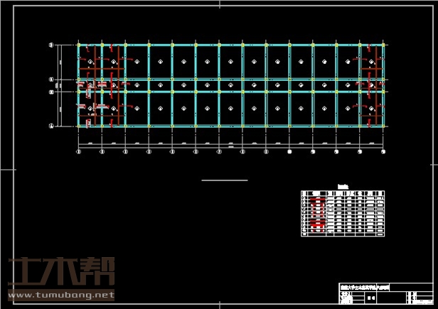 建筑长58.9m,宽16m.一榀框架层高3m,柱距4.5m,3跨,跨度6.6m,2.4m,6.6m;