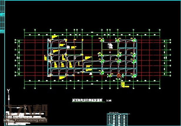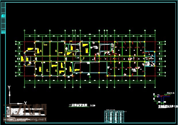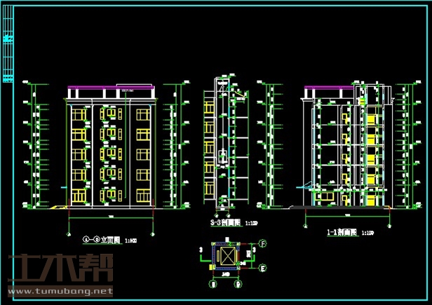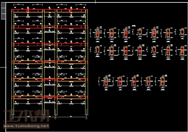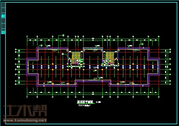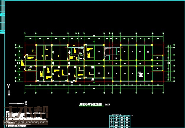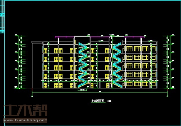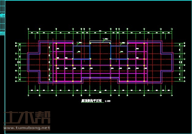 建筑长61.8m,宽16.3m.一榀框架层高3.9m,柱距7.2m,3跨,跨度6.9m,2.5m,6.9m;