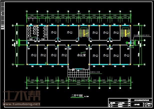 二层:办公室4*5.7*4间、8*5.7*1间、4*7.5*8间,会议室8*7.5*1间;