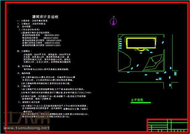 5层框架结构旅馆,土木工程建筑结构毕业设计,长63.3米,宽21.95米,面积6800平方米