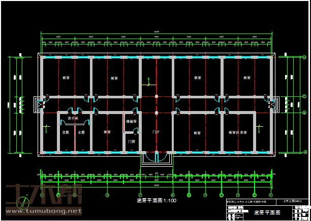 一层:教室9*7.2*5间、6*7.2*1间,教师休息室6*7.2*1间;