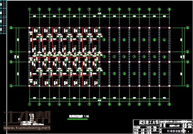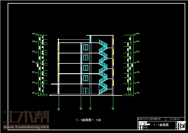 二~五层:教室9*7.2*6间,教师休息室6*7.2*1间;