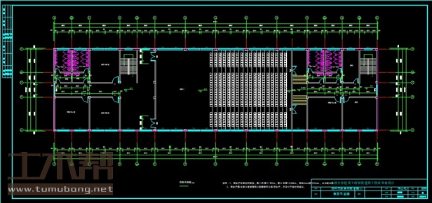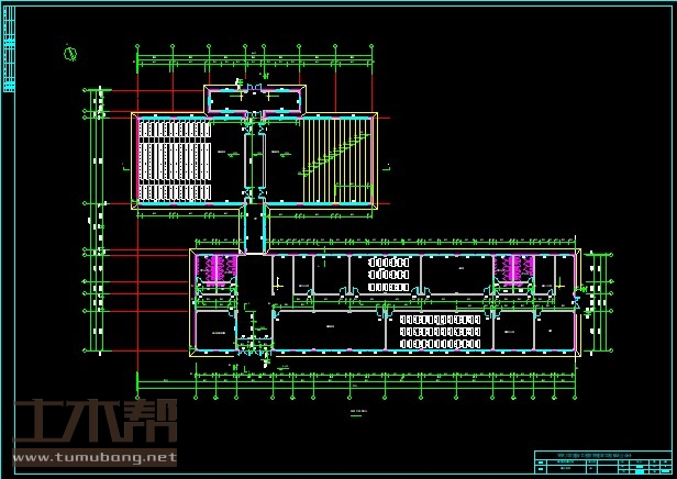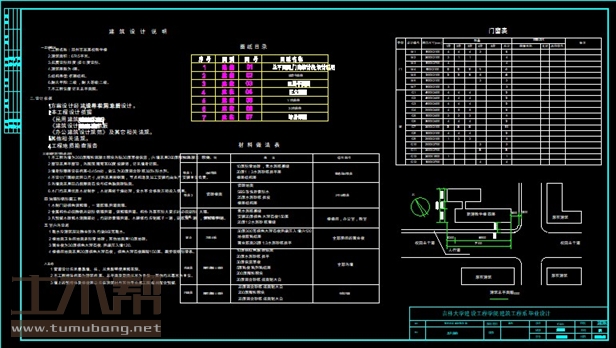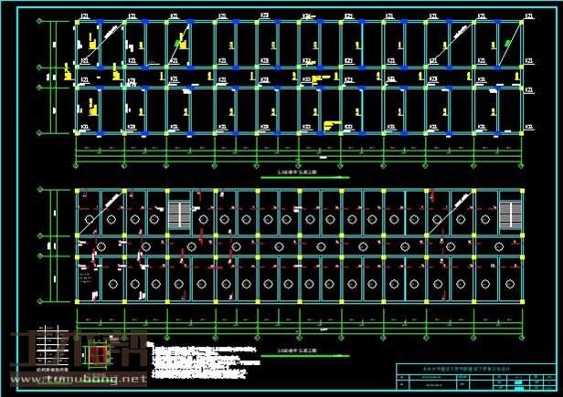 一层:制图教室19.8*6.9*2间,管理办公室7.2*6.9*1间,库房7.2*6.9*1间,勤杂人员室3.6*6.9*1间,小教室12.6*6.9*2间,教员休息室3.6*6.9*1间,传达室兼值班室7.2*6.9*1间,阶梯教室18.9*15*2间;