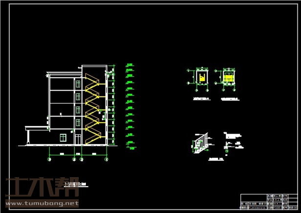 二~五层:一层:普通教室9.9*6.6*3间,储藏室3.3*6.6*1间,休息室6.9*3.3*1间,值班室6.9*3.3*1间,多媒体教室6.9*14.1*1间,实验室6.9*10.5*1间,准备室6.9*3.6*1间,阶梯教室12*16.8*1间;