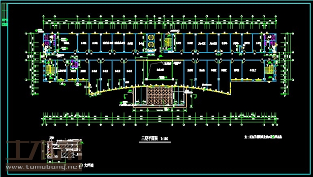 三层:活动室7.5*6.3*1间,办公室3.9*6.3*11间、3.9*6.6*5间,社保科3.9*6.3*2间,资料室3.6*6.3*1间、3.9*6.6*2间,仲裁厅7.5*6.6*1间,仲裁室3.9*6.6*2间,鉴定站3.9*6.6*1间,技能科3.9*6.6*1间,休息室3.6*6.6*1间;