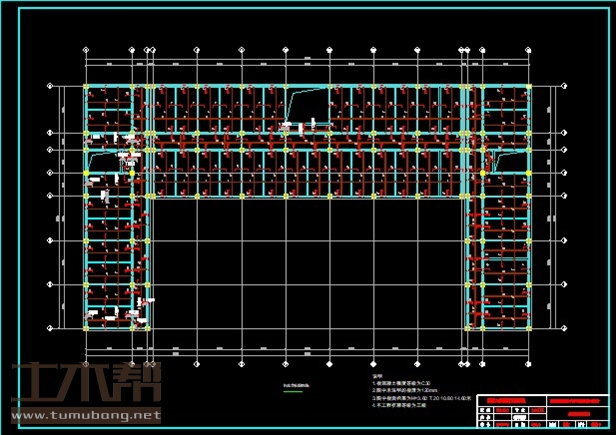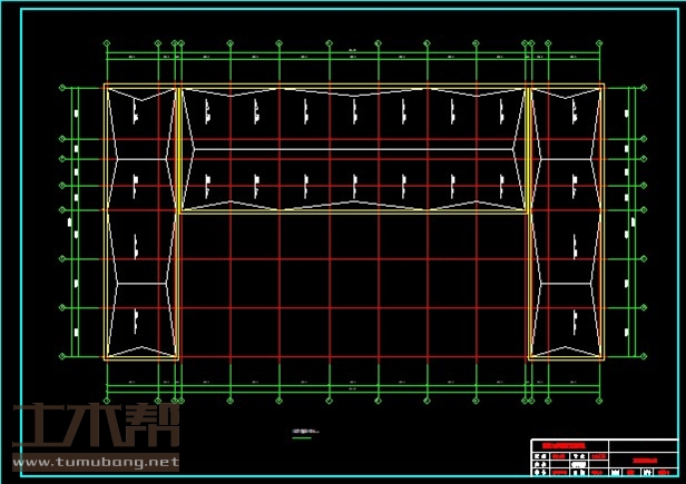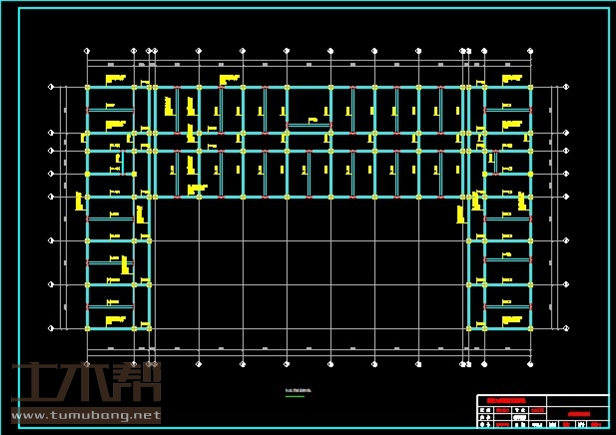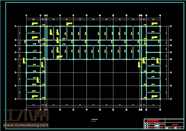 建筑长61.2m,宽33.74m.一榀框架层高3.6m,柱距6m,3跨,跨度6.3m,2.4m,6.3m;