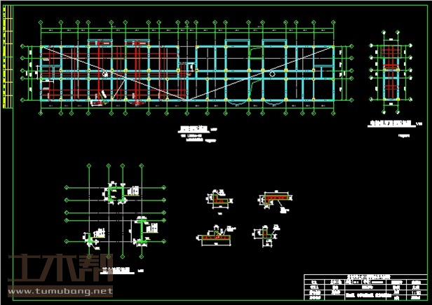 建筑长57.2m,宽10.5m.一榀框架层高2.8m,柱距4.5m,3跨,跨度4.8m,1.5m,4.2m;