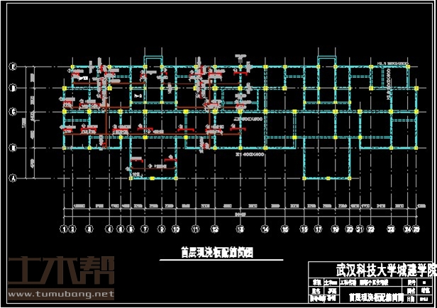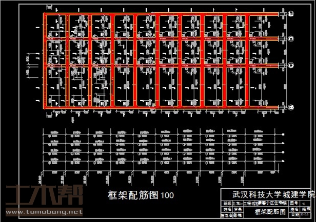 建筑长54.4m,宽17.2m.一榀框架层高3m,柱距3.9m,3跨,跨度3.3m,3.6m,5.6m;