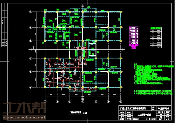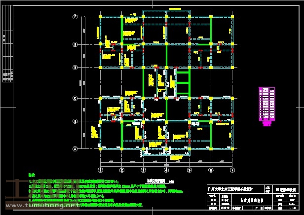 建筑长26.14m,宽27m.一榀框架层高3m,柱距4.2m,5跨,跨度5.4m,4.5m,6m,4.5m,5.4m;