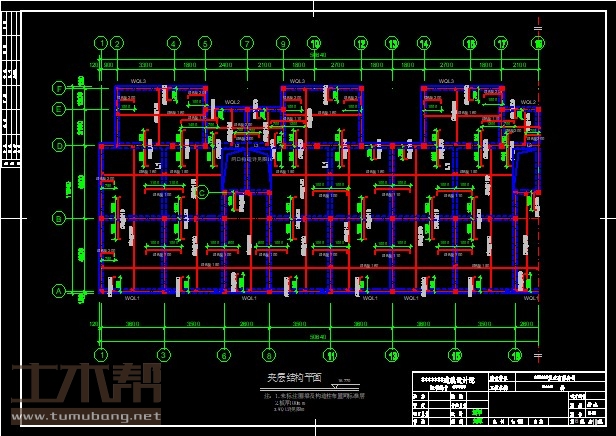 建筑长50.64m,宽11.94m.一榀框架层高2.8m,柱距3.3m,3跨,3.3m,4.2m,4.2m;