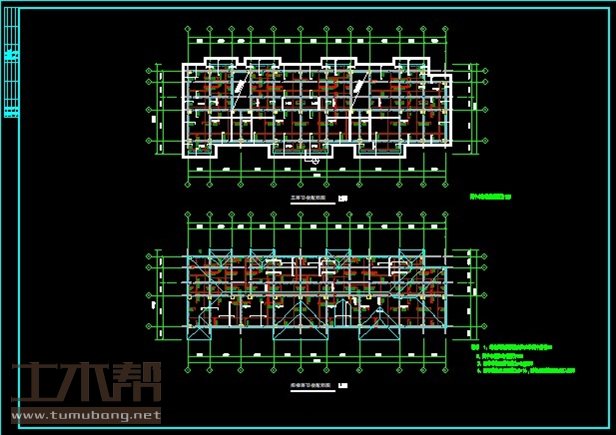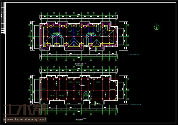 建筑长35.34m,宽12.26m.一榀框架层高2.8m,柱距3.6m,2跨,跨度5.4m,4.2m;